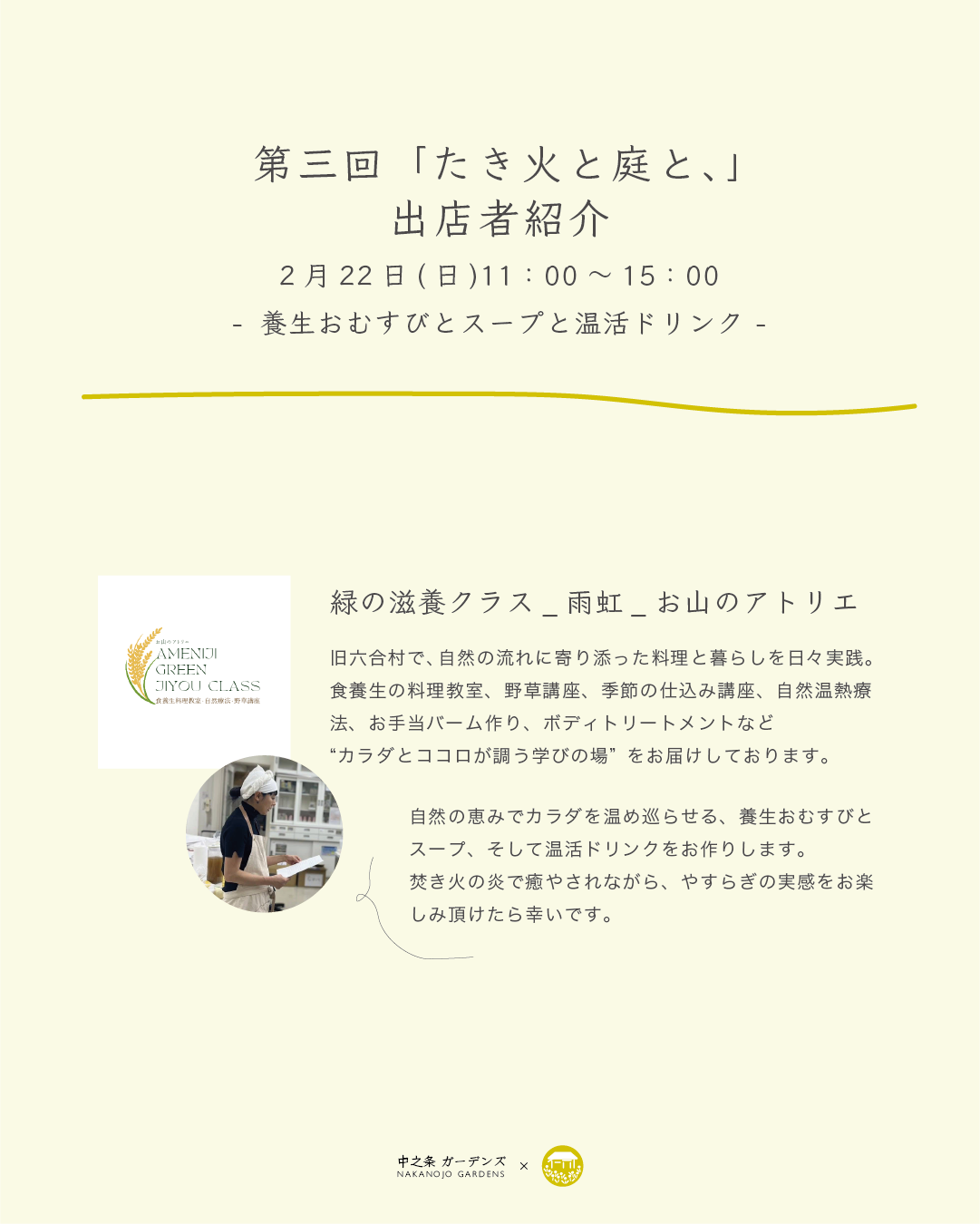 緑の滋養クラス_雨虹_お山のアトリエ(養生おむすびとスープと温活ドリンク)