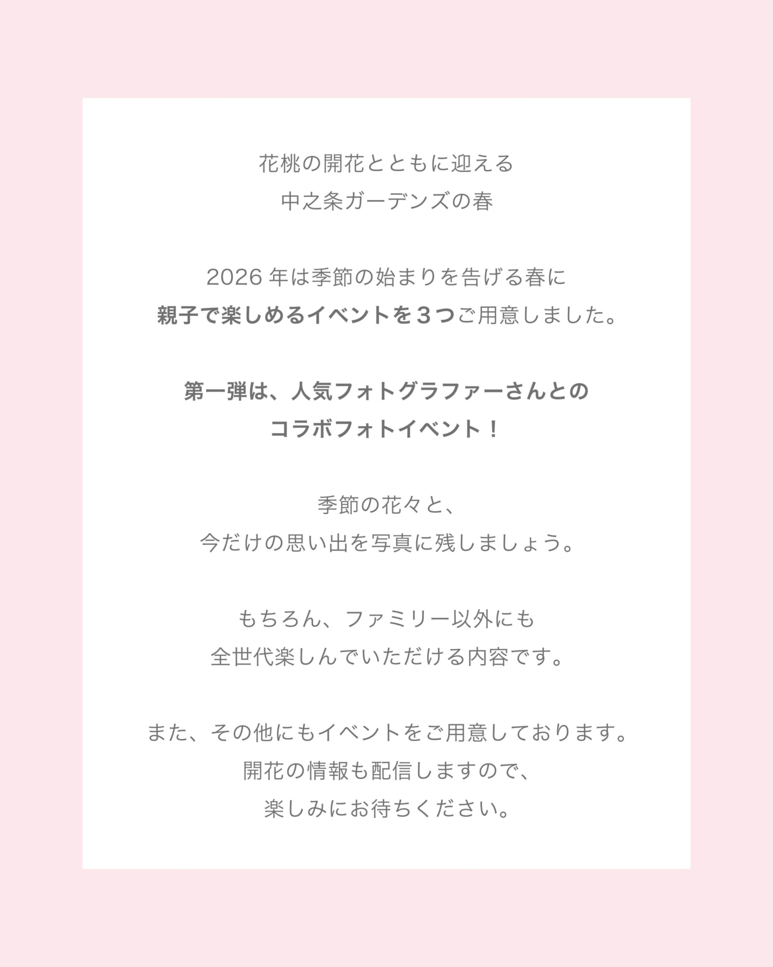 2026年は季節の始まりを告げる春に、親子で楽しめるイベントを3つご用意しました。