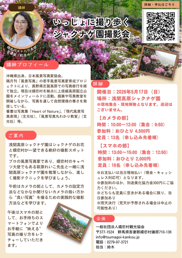 ぜひ「天空の花園 浅間高原シャクナゲ園」で楽しく撮影テクニックを学びましょう!